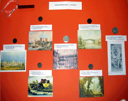 David's display consisted of several coins and medallions together with an associated picture where the scene on each was almost identical. It is fairly easy to find graphic material of scenes depicted on numismatica but to find contemporary material, as incorporated in the display, is rather more difficult. The subject matter covered included Iron Bridge at Coalbrookdale, the Great Exhibition, the Brighton Pavilion, and Salisbury Cathedral. More striking was picture of the Gloucester West Gate Bridge on the river Severn painted in 1806 which was absolutely identical to the scene depicted on the Gloucester & Berkley coal company token of 1797. Another identical match was the medallion of the Maharaja of Benaries dated 1872. The obverse has the Maharaja with his adopted son and the reverse is of Stoke Row well. What is clear is that the obverse is taken directly from the picture published in 1864, as the depictions are identical.