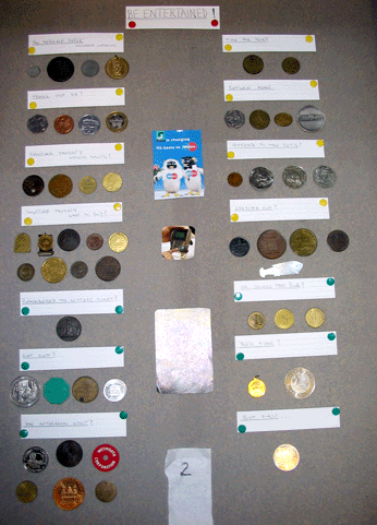 Following a day out and seeing a medallion celebrating 100 years of railway catering Graham began to think of all the pieces he had related to a day out. Hence his display consisted of various tickets, tokens advertisements and medallions that could be associated with a day out. We had the morning paper, travelling to the shop for retail therapy, what to buy and eating out. Then a visit to an attraction followed by time tea or maybe coffee. Returning home it is attend to the pets before an evening out of gambling, cards or maybe a circus. Then, to finish the day, a drink at the pub or ghastly cocoa, before retiring for the night.