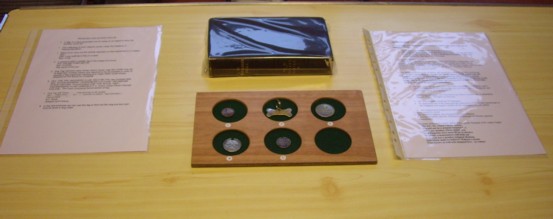 The second talk was by Michael and he discussed probably the only true rarity of the modern UK decimal series, the misstruck 1983 2p with ‘NEW PENCE’ instead of ‘TWO PENCE’. Michael had examples of both on show. The misstrikes were only issued in sets and opinions differ greatly about how many were struck, from a few 10s to a few hundreds.